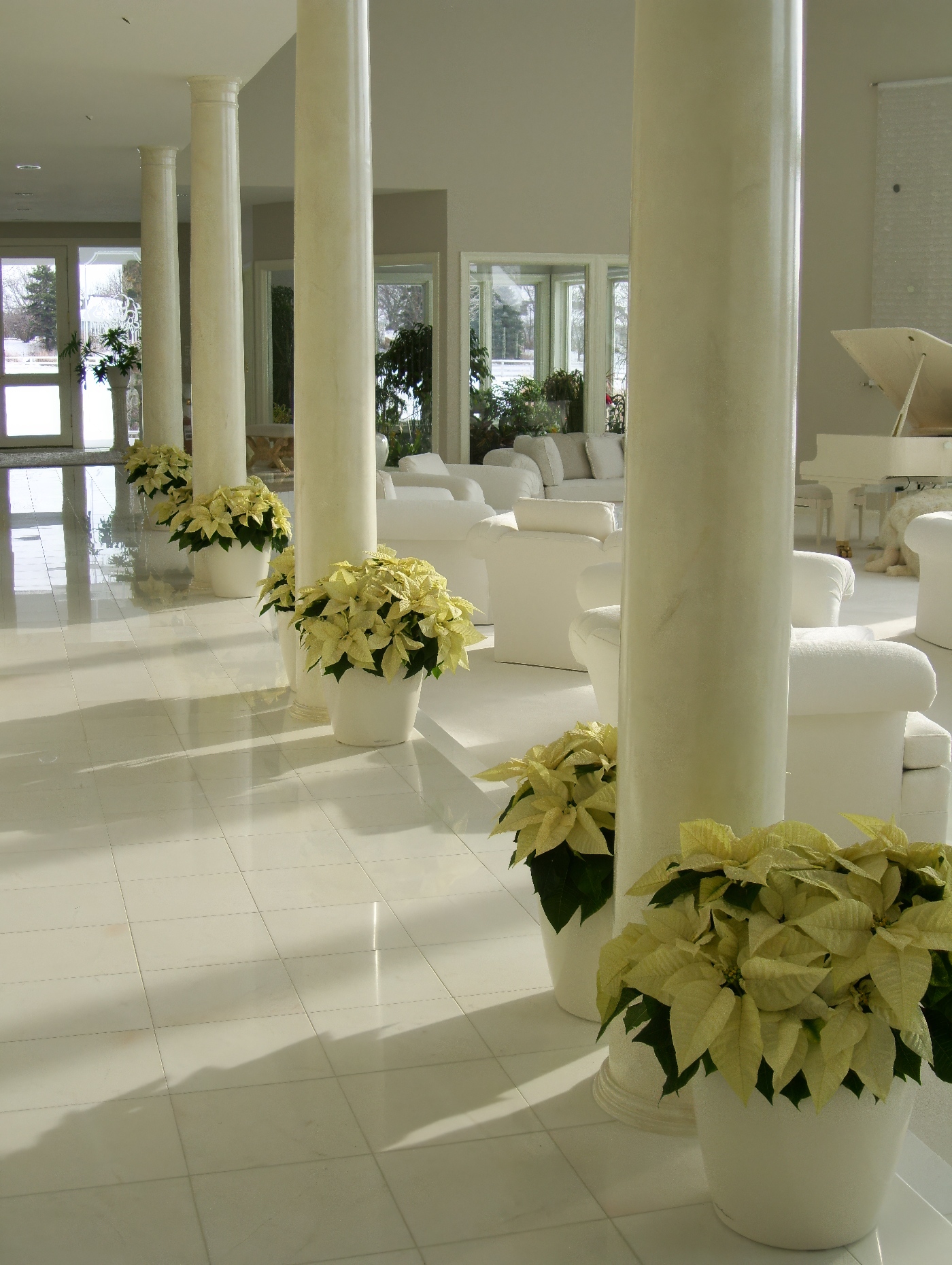 Our team carefully selects the finest materials—whether working with artificial elements or incorporating live trees, poinsettias, and seasonal plant arrangements—to ensure stunning visual impact while considering eco-friendly and energy-efficient options.